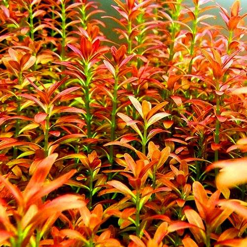 Rotala Sunset is also known as Ammannia sp. Sulawesi . It is a new stem plant from Indonesia that exhibits a pale orange coloration. This plant grows in Lake Sulawesi in Indonesia and requires high-intensity light to display its vibrant colors.